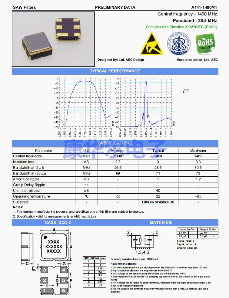 A141-1400M1,进口石英晶振,贴片晶振,安克晶振,AEK Crystal,声表面滤波器