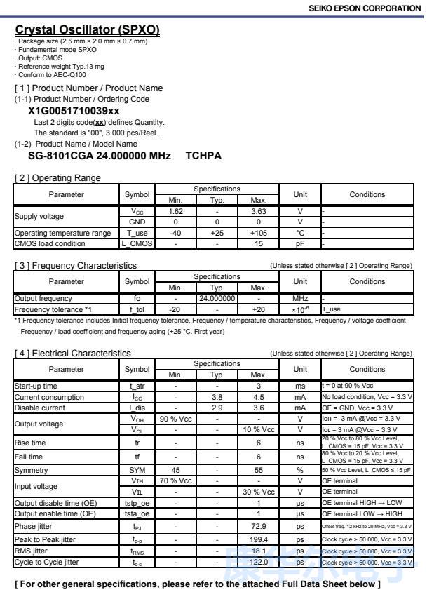 SG-8101CGA爱普生有源晶振编码X1G005171003900,智能电视与智能音箱家电晶振