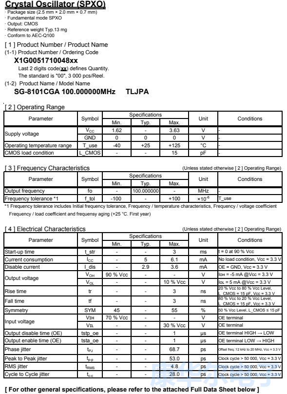 SG-8101CGA有源晶振,X1G005171004800汽车模块晶振