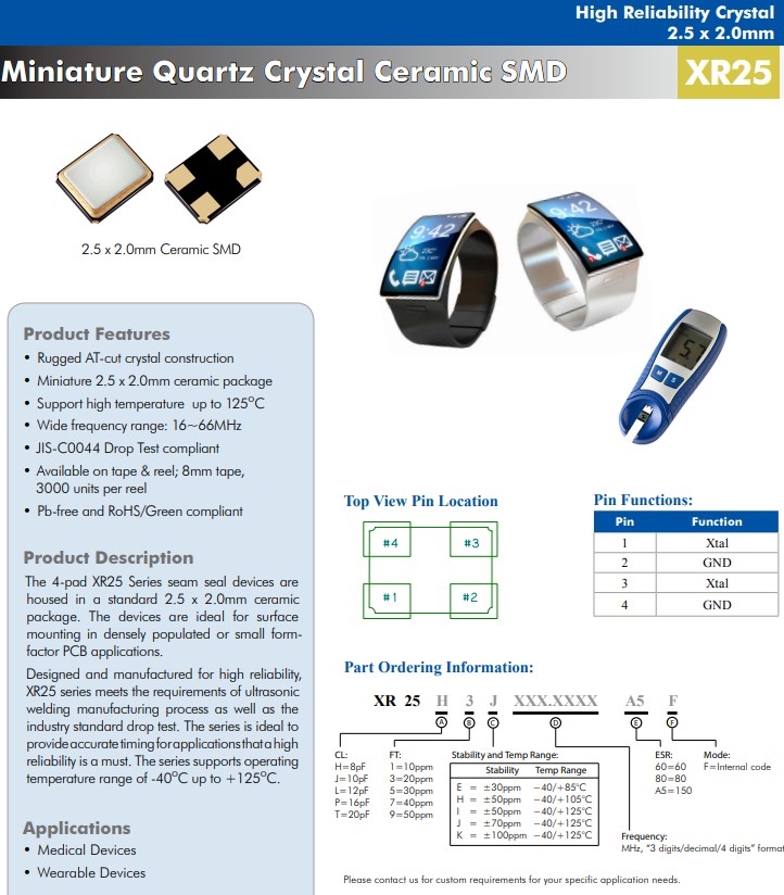 XR25系列专为高可靠性而设计和制造,XR25H3J20.0000A5F,无源晶振,ECERA晶振