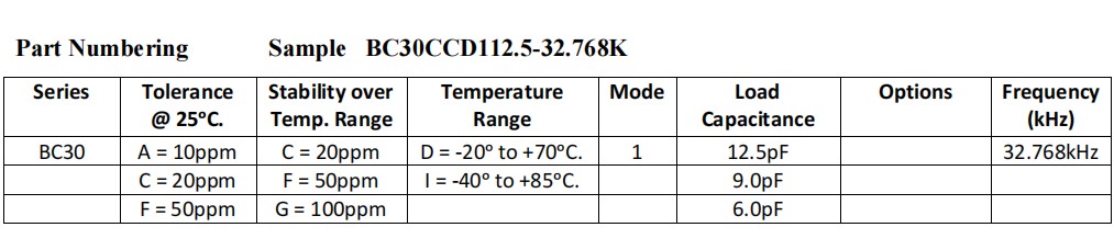 BC30,BC30CCI112.5-32.768K,8038mm,Bomar仪器仪表晶振,美国进口晶振,Bomar博马尔晶振,型号:BC30,编码为:BC30CCI112.5-32.768K,精度:±20ppm,频率稳定性:±20ppm,负载:12.5pF,工作温度范围:-40℃至+85℃,频率为:32.768K晶振,小体积晶振尺寸:8.0x3.7x2.5mm陶瓷封装,四脚贴片晶振,无源晶振,8038晶振,石英晶体谐振器,无铅环保晶振,SMD石英晶体。具有超小型,轻薄型,良好的抗冲击性和耐热性。石英晶振,应用程序包括:实时时钟晶振,移动通信晶振、芯片卡晶振、无线通信晶振,钟表电子晶振,电脑主板晶振等应用。