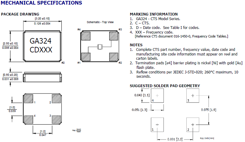 CTS晶振,石英晶振,GA324晶振