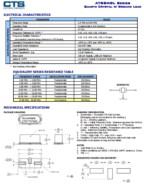 | GL240F23CDT | CTS-Frequency Controls | ATSSMGL | MHz Crystal | 24MHz | ±30ppm | ±20ppm | 18pF |