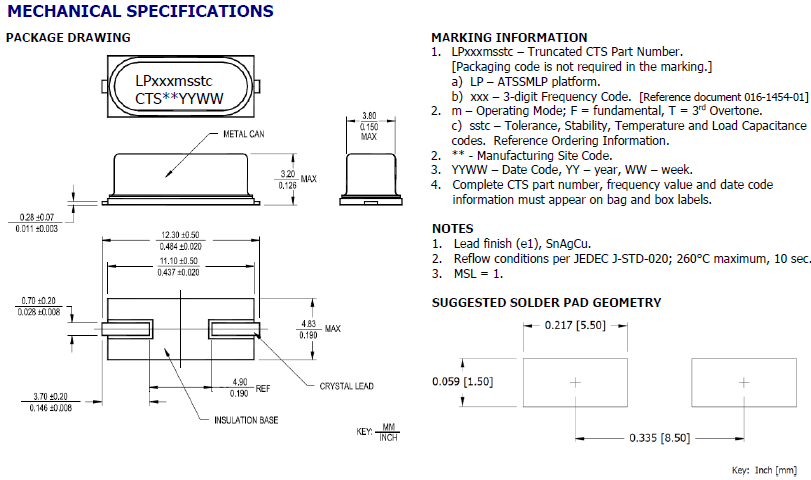 CTS ATSSMLP在一个已经验证的电阻焊接金属封装中集成了一个高Q石英谐振器。ATSSMLP提供了紧密的稳定性选项,非常适合支持广泛的商业和工业应用