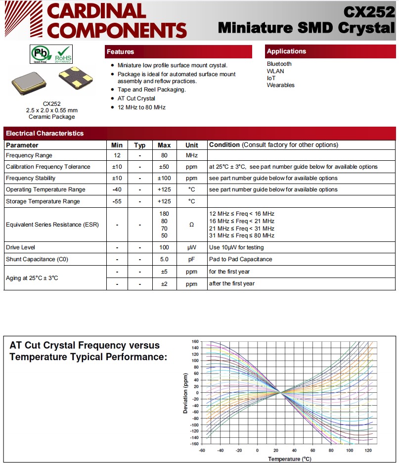 Cardinal蓝牙晶振,CX252Z-A2B3C3-70-26.0D10,2520mm,26MHz,CX252,参数表
