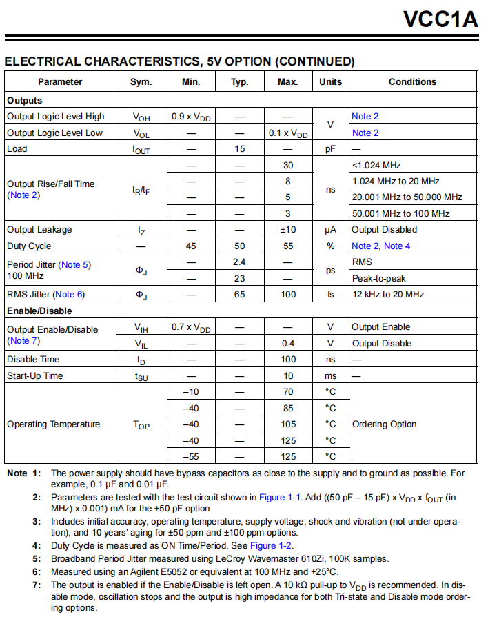 | Period Jitter (Note 5) 100 MHz |
