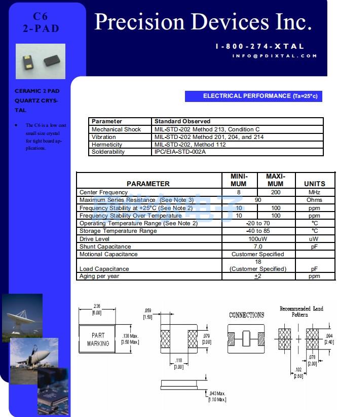 美国PDI晶振公司在1989年已是频率控制设备的主要供货商,致力于生产制造频率控制元器件,石英晶振,晶体振荡器,滤波器等系列产品规格的销售。频率控制产品:Crystals石英晶体谐振器,无源晶振, Filter晶体滤波器, XO晶体振荡器,VCXO压控晶振, TCXO温补晶振, OCXO恒温晶振, TC-OCXO温补恒温晶振, XO SMD封装系列, XO引线式封装系列, TCXO SMD封装系列, TCXO引线式封装系列, OCXO恒温晶振, OCXO SMD晶振系列, OCXO引线式封装系列, TCVCXO温补压控晶振,石英晶体振荡器等。PDI晶振所制造的频率控制设备使用在军事,工业,医学,汽车,通讯,蓝牙,航空电子设备和商业的市场。