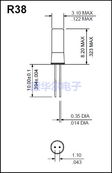 Rubyquartz钟表晶振,R38系列32.768K晶振,R38-32.768-6-10PPM-NPB无源晶振