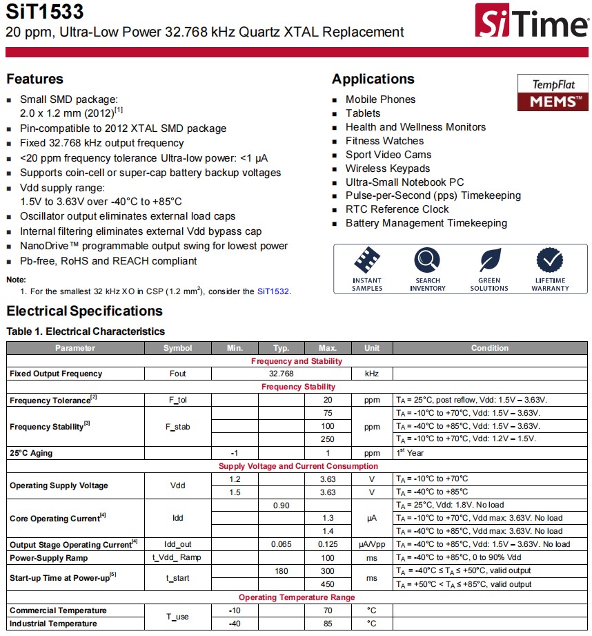 笔记本电脑6G晶振,SiT1533AC-H5-AA2-32.768,SiTime有源晶振,参数表