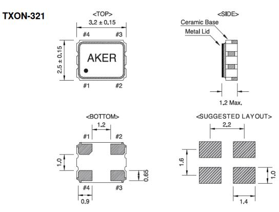 AKER晶振,小型温补晶振,TXON-321有源晶体.贴片式石英晶体振荡器,低电压启动功率,并且有多种电压供选择,比如有1.8V,2.5V,3.3V,3.8V,5V等,产品被广泛应用于,平板笔记本,GPS系统,光纤通道,千兆以太网,串行ATA,串行连接SCSI,PCI-Express的SDH/SONET发射基站等领域.符合RoHS/无铅.